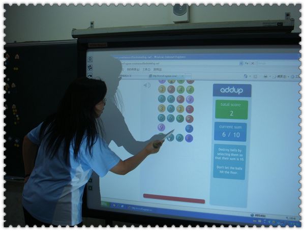 - 接著讓學生排隊輪流玩,我們兩個老師在旁邊看,慧鈴老師說 VOSA的鐵製伸縮棒超好用,在電子白板上指指點點很精確,但伸縮棒敲擊白板的時候聲響太大,學生會以為老師在生氣,其實並沒有。