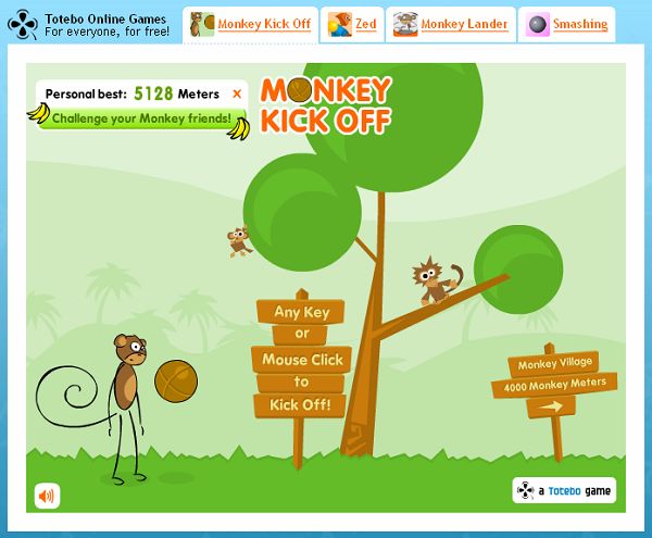 - 這個遊戲的玩法相當簡單,點一下猴子,猴子就會把球踢出去,看誰踢得遠,如此而已。